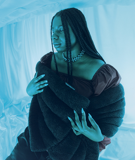 Chabi-Gara is happy to discuss the sense of isolation she has felt at different times in her life, moments of extreme loneliness that only painting seems to have saved her from. She translates these states of obsession with great precision in her images, working non-stop from dawn to dusk in her studio on the outskirts of Paris. Located in a quiet neighbour- hood, sandwiched between 18th-century buildings and abandoned factories, it contains few objects inside. Just like her home, she says, because her needs are few. The contrast with her paintings is striking, because they abound with ob- jects, like the bedrooms of the hikikomoris or the Japanese thrift stores she also draws inspiration from, where sec- ond-hand clothes pile up to the point of suffocation.