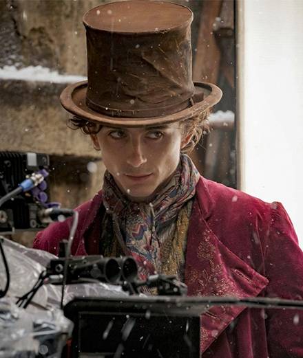 , made up as Willy Wonka. In the photos released by Warner Bros., the Dune star is seen in a frock coat, top hat and chic scarf around his neck, wearing a mischievous look. In these shots from another time, he perfectly embodies the man who was once played by