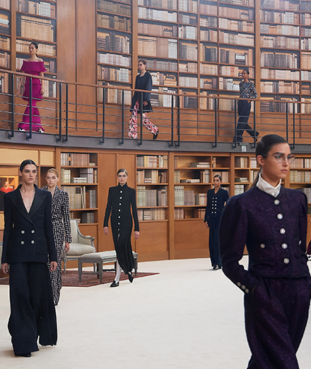 Discover all the looks from Chanel’s couture Fall-Winter 2019-2020 fashion show in Paris. For her first Chanel couture collection, Virginie Viard took over the Grand Palais and turned it into a library.