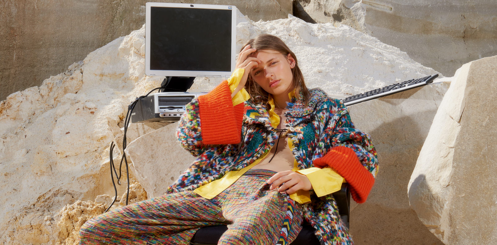 As developed in this first collection, Williams’s system of production combines recycling and social aid: to help fight hunger in the U.K., Williams invented an exchange circuit between the Vauxhall Foodbank and the supermarket chain Tesco, swapping fresh fruit and vegetables for unsold stocks of clothing. And it was with these garments that Williams made her first collection, in 100 % recycled fabric. “Afterwards, I also made new materials by working with all the waste from a social rehabilitation centre that produces wine, cheese, textiles and even electrical goods,” she explains. “I work on each collection in partnership with a charity, to which I give 20% of the profits.