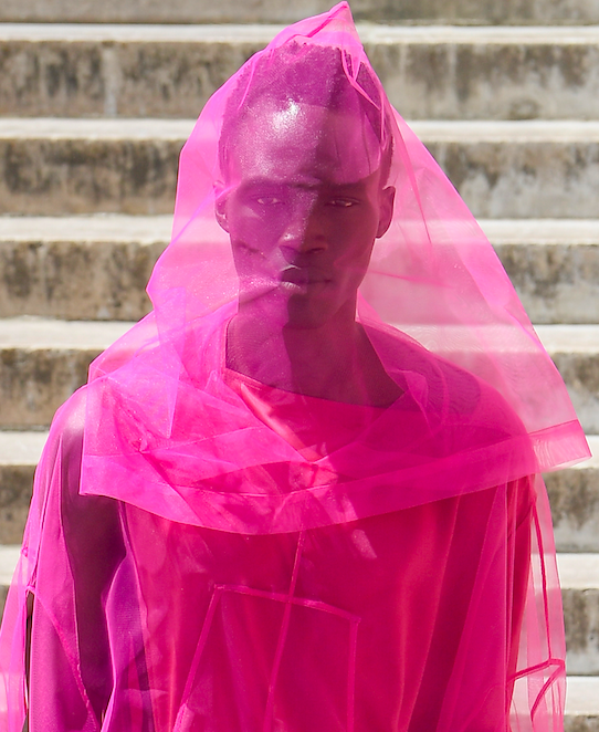 Despite the burning sun shining on the Palais de Tokyo on Thursday, June 23rd , Rick Owens exorcised our fear of the end of the world induced by pandemics, wars, and global warming, through a breathtaking performance – three flaming spheres like burning suns placed above the fountain crashed quietly one after the other into the water. In this apocalyptic atmosphere, the Californian designer composed a collection inspired by a trip he took to Egypt, and more precisely to Edfu, the Ptolemaic temple of Horus. Tulle dresses designed to protect from flies are worn over silk shirts wrapped around the body, while shoulders widen and loose light shirts and pants float on the silhouettes. Iridescent pieces evoke beetles’ wings, the work on the denim in collaboration with the Parisian label Paradoxe makes them appear faded and damaged, and the nylon is more resistant than ever. Although very personal, Rick Owens’ Spring-Summer 2023 Men’s collection moves us at the deepest level, encompassing our fear of extinction and our desire to survive for a few minutes only.