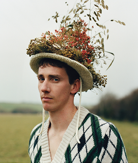 The British heritage keeps inspiring fashion designers. Whether they draw their influences from Britain’s large history of suits and decorative arts, such as the Arts and Crafts movement during the mid-19th century, or from traditional crafts like tartan and quilted fabrics, this heritage offers a breeding ground for many native and resident designers, from Vivienne Westwood and Alexander McQueen to Charles Jeffrey and Stefan Cooke more recently. Steven Stokey-Daley follows that same path. Since the launch of his menswear label S.S. Daley in 2020, it didn’t take much time for the Merseyside-born creator, a county in Northwest England, to make an impact and land up as one the LVMH Prize for Young Designers’ finalists. Offering a “new British wardrobe” as he phrases it, he revisits the British Isles classics, such as the Irish knit sweater, the Jacquard pattern, the Prince of Wales check suit, or the striped one. Made from leftover stocks and sustainable materials, those elements spring as modern and bold cuts, with openwork sweaters, tight jumpsuits, paisley mini-shorts, fluid tops with puffed sleeves, or the well-known pair of large-darted pants decorated with blue flowers, which Harry Styles wore for the music video of his song Golden. Since then, the British pop phenomenon keeps playing with his gender fluidity, thus giving high visibility to the new label. He has recently worn his brown cardigan ornamented with two knitted yellow ducks – S.S. Daley’s signature – which embodies the humor of a young literature and history lover who sees the fashion industry as a “giant play”. Indeed, through his collections, Steven Stokey-Daley gently teases the socio-cultural divisions between the upper class and the working and rural ones, adding a delicate but subversive touch of queerness.