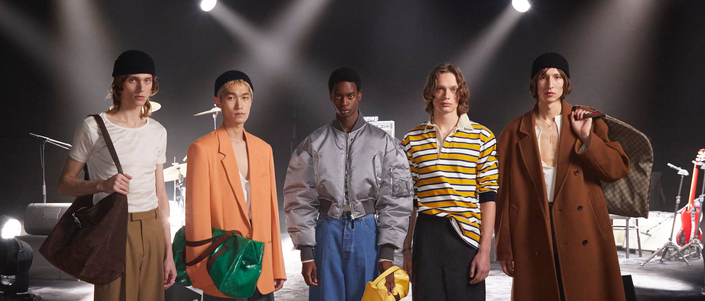 Ce grand sourire qui se dessinent sur les visages des modèles se comprend peut-être par le fait qu’elles ne portent pas de talons mais des chaussures plates rehaussées de brides. Pour accessoiriser ces silhouettes, Armani ajoutent des petits chapeaux et des foulards quand les sacs ne viennent pas ajouter une dose supplémentaire de style.