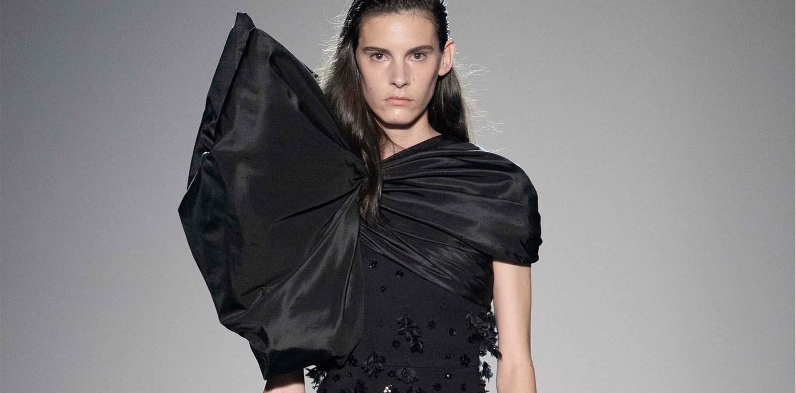 Donatella Versace maîtrise décidément l’art de proposer des silhouettes féminines à la fois sexy et puissantes avec des lignes très épurées – même si se glissent ici quelques modèles vaporeux –, tout en exaltant les lignes du corps. Un foulard porté sur la tête dédramatise l’ensemble. Chez l’homme, sobriété et sophistication se côtoient dans des silhouettes pratiques et élégantes qui siéent à merveille à nos modes de vie contemporains (hors crise sanitaire).