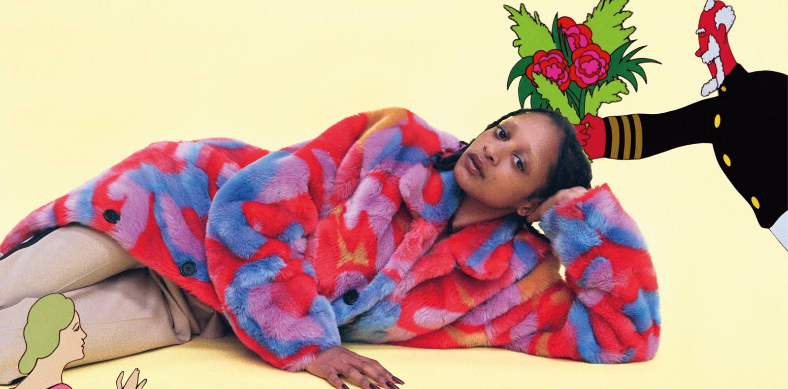 Partageant une même volonté d’exalter l’expressivité des corps, Jonathan Anderson et Michael Clark ont à cette occasion croisé leurs archives pour composer ce nouveau vestiaire. Explorée par le chorégraphe depuis des années, la rencontre entre corps et décor se manifeste immédiatement dans la reprise sur les tee-shirts et robes couvertes des imprimés déclinés en grand derrière eux. On découvre également plus tard un smiley inversé sur une salopette, ou encore un imprimé reprenant le logo de la chaîne de supermarchés Tesco, jouant ainsi avec le langage de la publicité pour mieux le détourner. À l’image des costumes imaginés par Michael Clark pour ses créations, JW Anderson utilise les couleurs vives pour traduire différent états d’esprit : dès les premiers ensembles, les pantalons bootcut unis se déclinent ainsi en vert, jaune, bleu électrique, ou encore en orange, tonalité que le créateur dit lui-même associer à la curiosité.