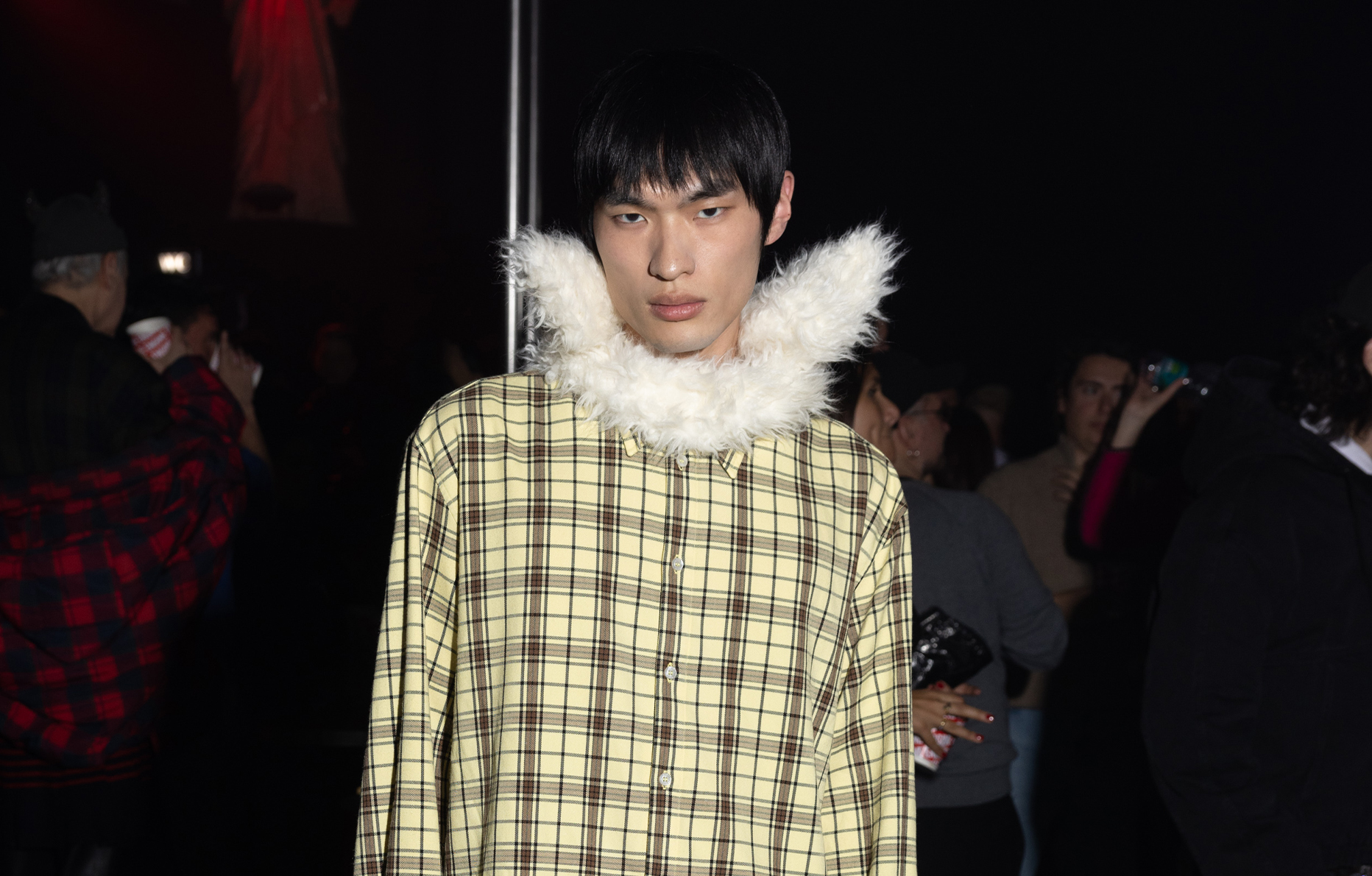Les inspirations ? Alice au pays des merveilles, l’inquiétant Donnie Darko, réalisé par Richard Kelly en 2001 mais aussi Gummo (1999), du réalisateur américain Harmony Korine, des références chères au fondateur et directeur artistique Massimo Giorgetti. Photographiées au milieu des invités et d’un décor fait d’énormes champignons à pois, par le célèbre photographe canadien Bruce LaBruce, les silhouettes colorées de cette collection “Follow the rabbit” soufflent un vent de folie et de joie sur la fashion sphere.