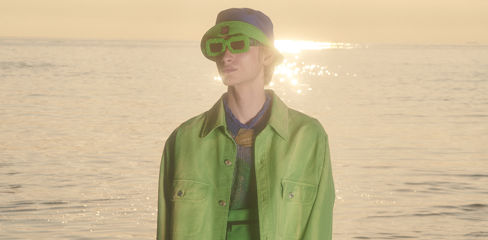 Alors que la pluie menace dangereusement la Ville lumière, Rick Owens s’est, une nouvelle fois, emparé du parvis du Palais de Tokyo pour présenter sa collection homme printemps-été 2024. À chaque défilé sa scénographie éblouissante. Si, précédemment, le créateur américain avait privilégié les présentations sobres, on se rappelle néanmoins de l’impressionnant lâché de sphères enflammées dans la fontaine de l’institution parisienne (homme printemps-été 2023) ou bien des geysers d’eau (printemps-été 2023). Cette fois-ci, l’assistance a été immergée dans un nuage de fumée épaisse colorée. Jaune, bleu, rouge… le thème de ce défilé est la joie. “Alors que le monde est de plus en plus menacé, la joie semble être une fausse note, mais peut être est-ce la seule réponse moralement correcte ? Au-delà de la gentillesse, la joie n’est-elle pas ce pour quoi nous avons été mis sur terre ?”, déclare Rick Owens.