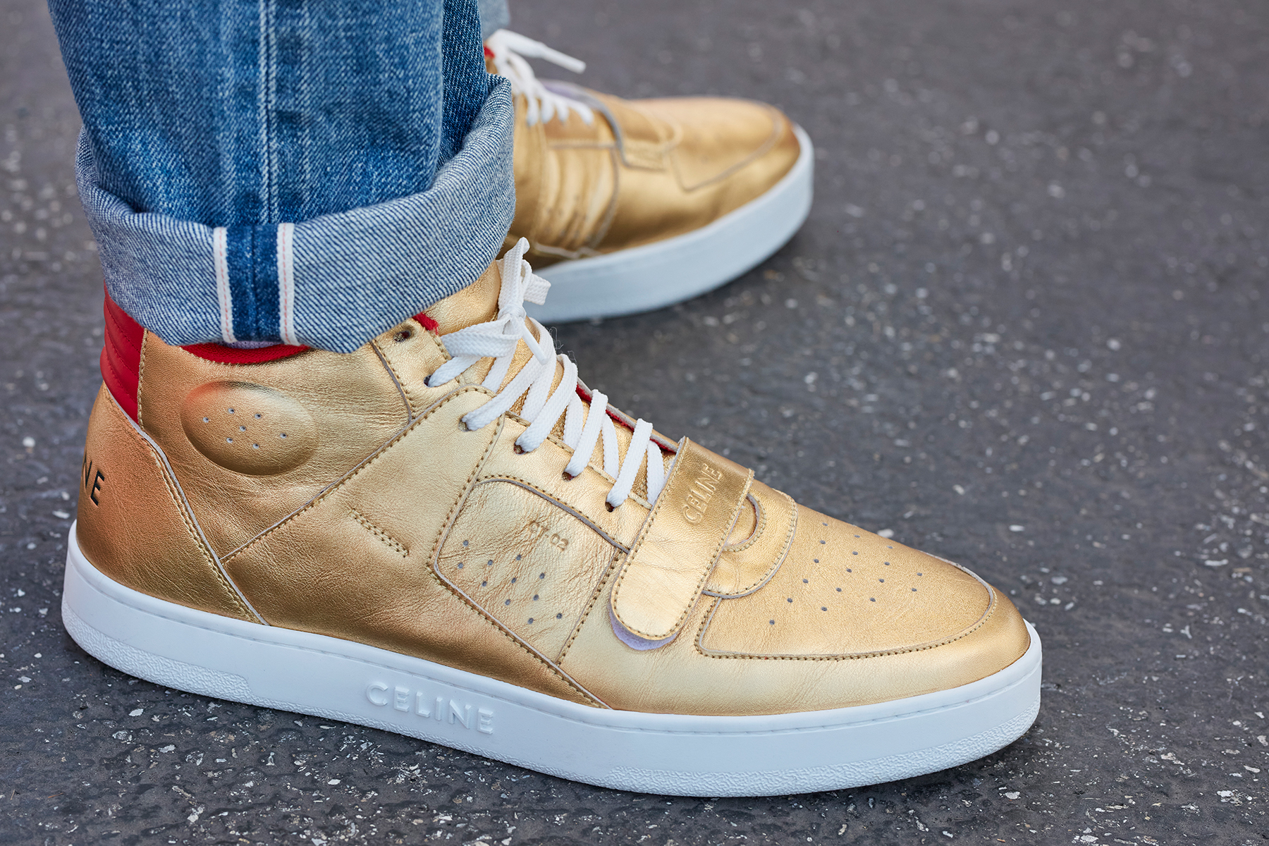 Pour accompagner cette collection radicale taillée pour notre monde contemporain, Marine Serre s’associe au chausseur anglais Jimmy Choo pour une collaboration composer de 6 modèles à la croisée de leurs savoir-faire et de leurs univers. En inspiration de cette collection de souliers, on retrouve le modèle Faro au bout allongé et doté d’un petit talon trouvé des archives de Jimmy Choo. Ce soulier issu de la collection automne-hiver 2000 se décline chez Marine Serre en boots, boots-chaussettes , bottes, le tout  à talons de 5 cm, escarpins à talons de 10cm et une paire de Mary Jane kitten-heels. Une basket fine à semelles légères – disponible aussi dans une version montante – complète cette collection. Le logo croissant de lune se retrouve sur tous les modèles, en ton sur ton sur du cuir noir, rouge ou blanc ou alors tissé sur un jersey recyclé beige et noir.