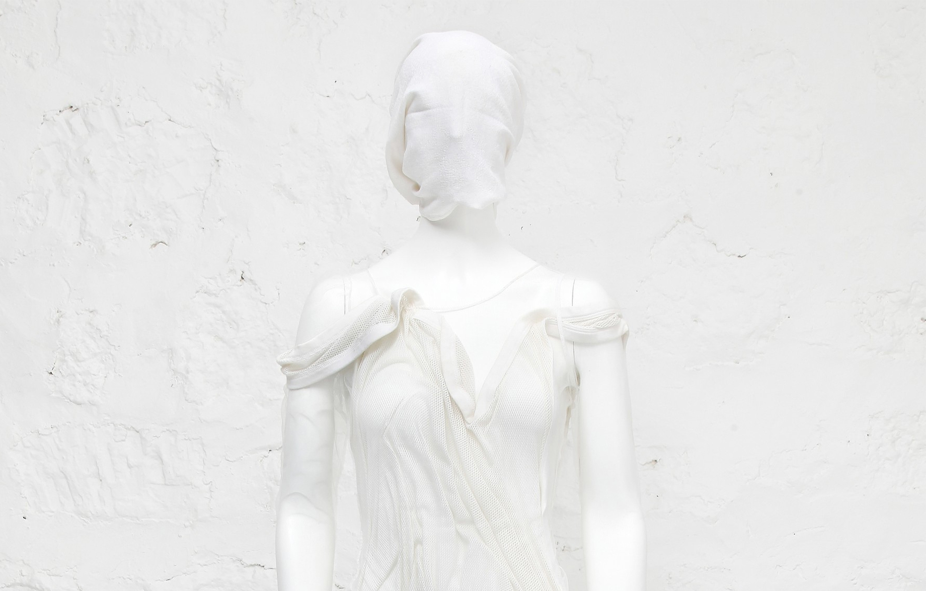 Riche d’objets précieux comme des patrons en papier ou encore des croquis réalisés par Martin Margiela lui-même, la vente dévoile de nombreux vêtements iconiques. Parmi eux, certains sont issus des tous premiers shows du couturier et notamment de la collection printemps-été 1990, telle une longue robe blanche presque transparente, aux drapés et plissés évanescents, issue d’un look dont le visage est couvert d’un morceau de tissu – élément que l’on retrouve aussi quelques saisons plus tard lors du show automne-hiver 1995-1996 –, annonçant déjà la révolution qu’imposera le créateur à la mode.