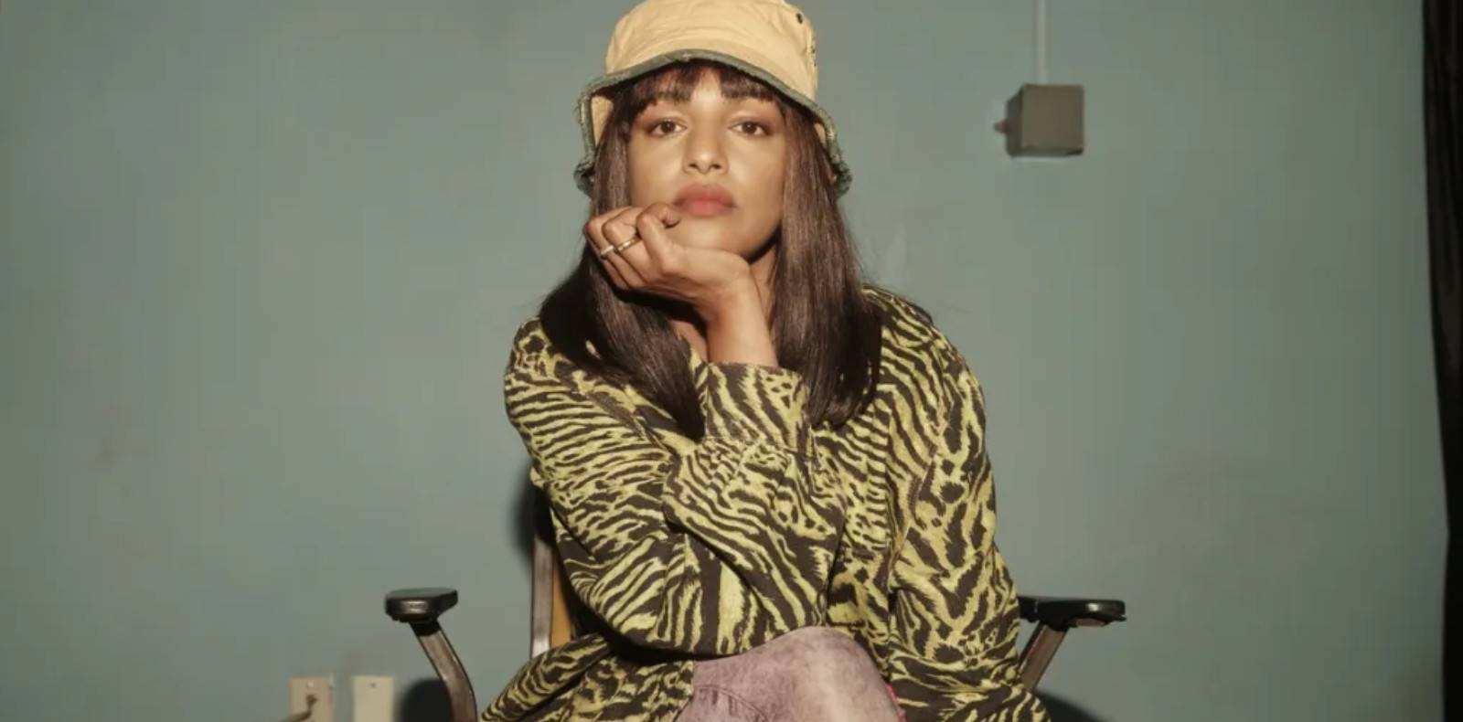 Loin de sombrer vers le désuet ou le kitsch, cet accessoire se décline ici en version béret en satin ou en vinyle noir, en version chapka, en version léopard ou bien sans couvre-chef, le voile épousant les côtés du visage sans entièrement recouvrir la tête.
